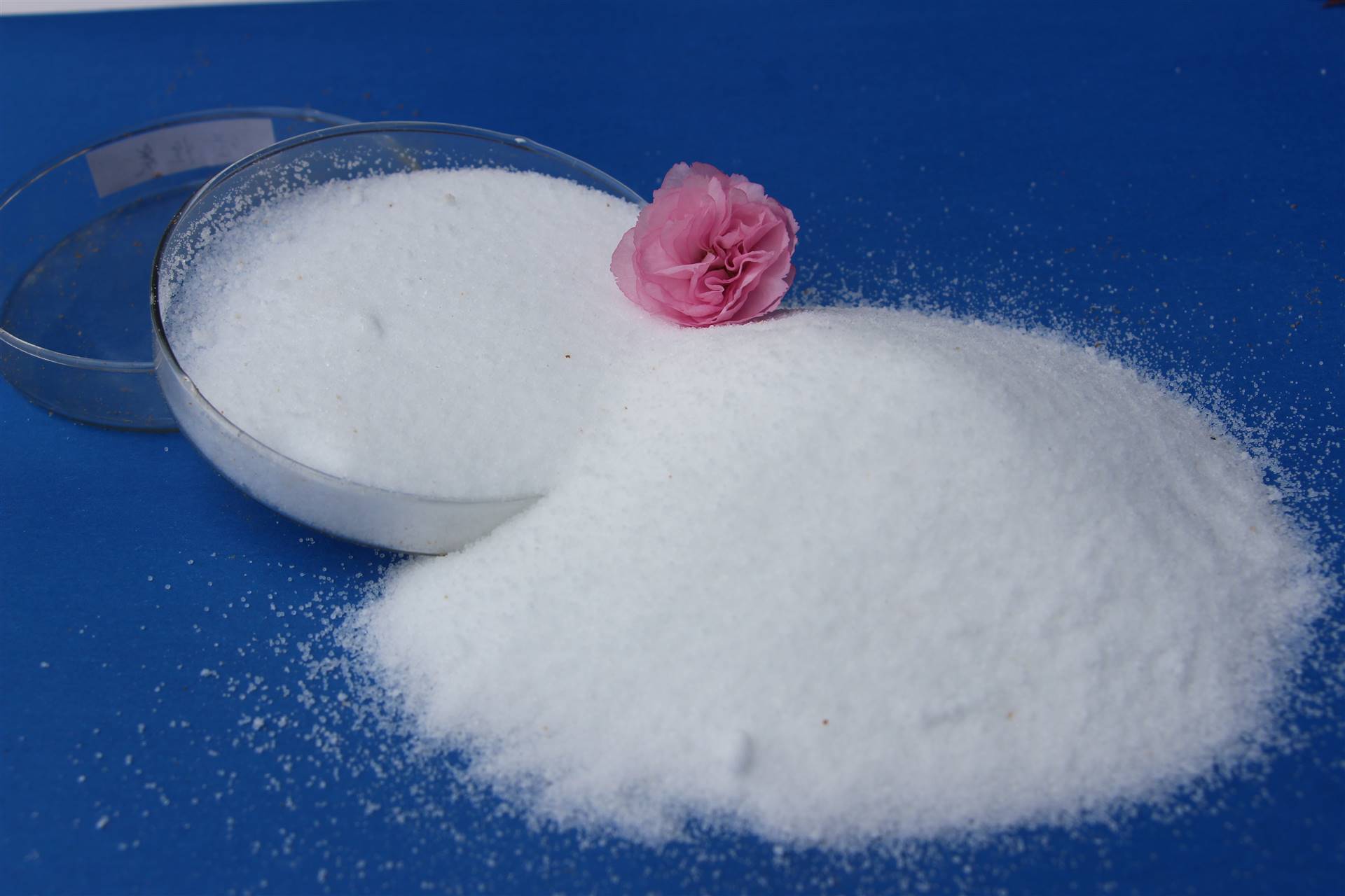 PAM為白色粉末或小顆粒,密度為1.32g/cm3(23℃),玻璃化溫度188℃,軟化溫度近210℃。通常干燥時(shí)含有少量的水分,在干燥的情況下能迅速吸收環(huán)境的水分。凍干法分離得到的均聚物為白色柔軟無定形固體,但與溶液析出、干燥后形成玻璃狀的部分透明固體。全干聚丙烯酰胺PAM為易碎白色固體。市場上銷售的聚丙烯酰胺通常在中等條件下干燥,水分含量為5%-15%。澆注在玻璃板上的聚合膜是透明、硬、易碎的固體。